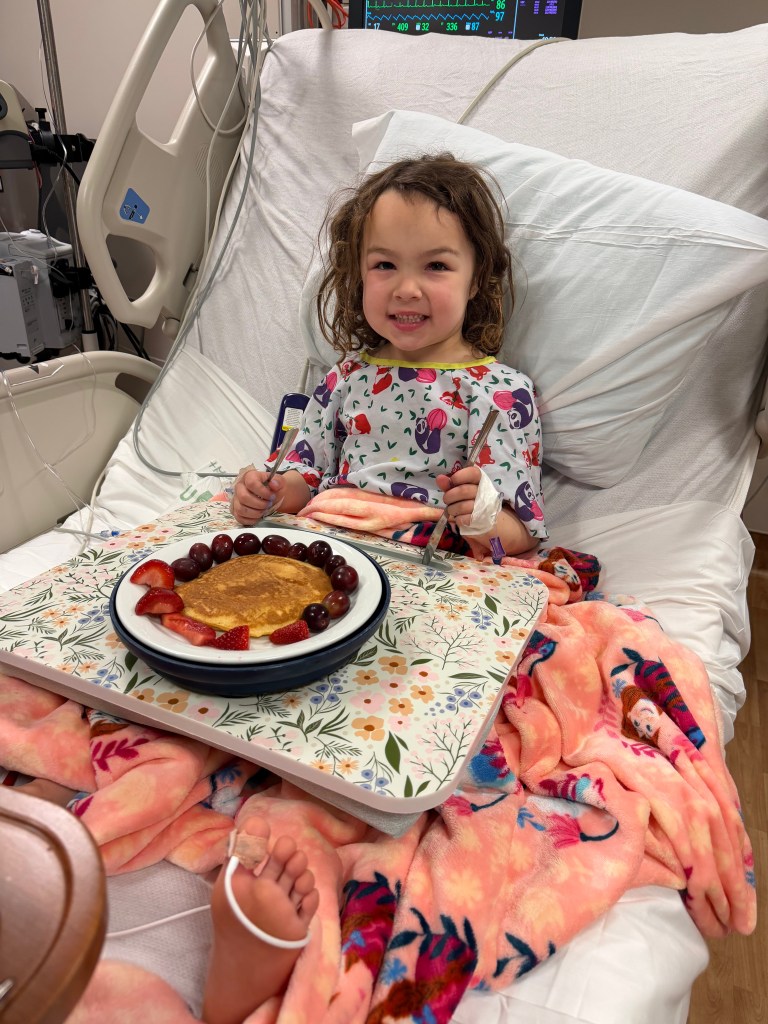 Today she started out with a nice pancake breakfast though she still doesn’t really have an appetite. She received an ECHO which came back “beautiful” so today began Day 1 for chemo. She received Daunorubicin and Vincristine on top of the Dexamethasone she’s already been taking. On day 4 she will receive a round of Calpargase and only once on day 4. On day 8 she will repeat the two chemo drugs (Daunorubicin and Vincristine) and also get a round of Methotrexate. Then again on day 15 and once more on day 22. Her WBC are down to 200s which is trending good. She’s in good spirits still and was up for most of the day. The steroids are making her slightly more goofy or ornery than usual, so you have to watch your back with her haha. We met her official oncology team today and they were wonderful and seem very positive. She’s also had no side effects, yet, from the chemo, so praying she stays feeling good and positive and that we will get to move to the acute floor soon where she can have visitors (her siblings sure do miss her) and more leeway with things.